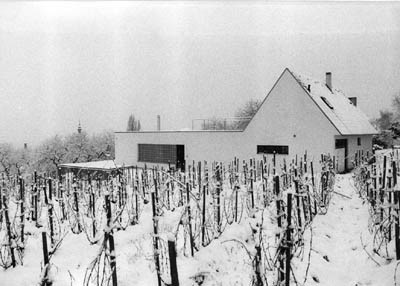 Jene raren Beispiele dafür, daß Zurückhaltung und Reduktion zu spannungsvoller Architektur führen können, haben meist im Vorhandenen einen Sie nehmen nicht selten den Charakter eines Rahmens an, der eine Auswahl aus dem Vorgefundenen heraushebt. Ein derartiges Bauwerk habe ich kürzlich in Krems gesehen: Das von Architekt Ernst Linsberger entworfene Doppelwohnhaus liegt an einem Südhang über der Stadt, an dem in vergangenen Jahren zahlrei- che Einfamilienhäuser zwischen teilweise noch genutzten Weinberge gebaut wurden.