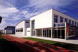 Weiters: 12 Klassen mit je 63 m², Sonderunterrichtsräume, ein zu Turnsaal und Speisaal führender Seitengang mit zweigeschossigem Luftraum und Galerie, der den südlichen Abschluß bildet. Dieser Baukörper ist von einem schwach gekrümmten Bogensegment überdacht, wodurch seine Sonderfunktion auch von außen sichtbar wird. Glasfassaden, Vollwärmeschutzkonstruktion.