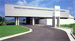 Auf einem Sockel des Komplexes liegt ein langes Balkengeschoss, das auf seinem anderen Ende von Stützen getragen wird und das sich gleichzeitig schützend über die Einfahrtstraße zieht. Zwischen Sockel und Riegel wurde eine Fensterbandreihe eingezogen, was den Riegel weniger massiv erscheinen läßt.