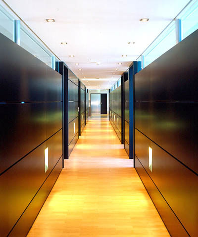 Der durch den Umbau betroffene Bereich ist gekennzeichnet durch den Übergang von einer zweihüftigen zu einer dreihüftigen Bürostruktur. Dieser, durch die unterschiedlichen Gebäudetiefen hervorgerufene Systemsprung ergibt lageverschobene Flure, versetzte Kernbereiche und damit zusammenhängend, eine verschachtelte Gesamtstruktur.