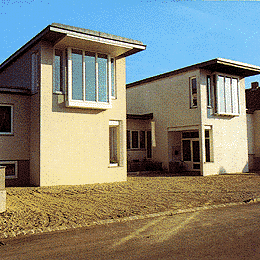 Das Innere ist entlang des ebenfalls als Schicht wirkenden Stiegenlaufs entwickelt, sodaß trotz begrenzter Fläche Weiträumigkeit aufkommt, die mit diagonalen Durchblicken und unterschiedlichen Raumhöhen noch verstärkt wird. ( Walter Zschokke )