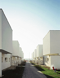 Dabei hätte gerade Eßling insofern eine Ausnahme von dieser traurigen Regel sein können, als es sich hier um Neubaugebiete handelt - es sind zwei, eines im Umfeld der Schule von Günther Domenig, ein zweites, das sogenannte Europan-Gebiet, auf der anderen Seite des alten Eßling - , die um einen zwar transformierten, aber intakten historischen Ortskern herum angesiedelt sind. Das heißt, infrastrukturell geht den neuen Bewohnern hier nichts ab, weil jede Menge Lokale und Geschäfte vorhanden sind, weil es eigentlich alles gibt. Man hätte sich also auf das konzentrieren können, was ohnehin das einzige ist, um das es in Stadterweiterungsgebieten geht: auf das Wohnen. Trotzdem ist das Ergebnis furchtbar ausgefallen.