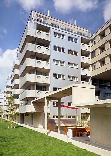 Die gesamte Anlage ist damit ein Prototyp für zeitgemäßes urbanes Wohnen. Im Vergleich zu den Großstrukturen im sozialen Wohnbau der siebziger Jahre ist sie besser an die städtische Infrastruktur angebunden, in höherer Qualität ausgeführt (etwa mit Holz-Aluminium-Fenstern) und auch in den Grundrissen wesentlich intelligenter konzipiert. Immerhin gibt es Wohnungstypen mit zwei Eingängen, in denen eine Generationswohnung oder eine Ordination als eigene Einheit betrieben werden kann, oder - in den unteren drei Geschoßen - kleine, unabhängige Räume, die als Büro angemietet werden können.