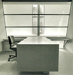 Das Gebäude soll als Haus betrachtet werden, das die spezifische Funktion einer Bank aufnimmt und durch die Struktur der Räume und deren Ausstattung die Nutzen nicht nur bestätigt, sondern signifiziert.