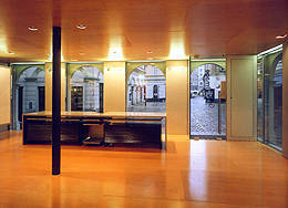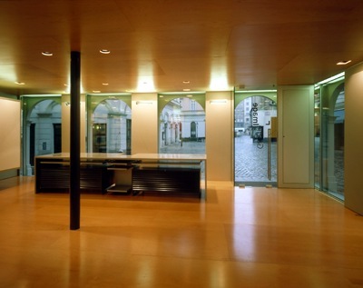 Wichtig bei diesem Umbau ist vor allem die grundlegende architektonische Strategie: rigorose Einheitlichkeit bei der Verwendung der Materialien, Verzicht auf jedes inhaltlich nicht begründete „Detail“, Vorfertigung der einzelnen Elemente, keine Ressentiments gegenüber vorhandenem Mobiliar und - der Blick dafür, worauf es langfristig wirklich ankommt und was von sekundärer Bedeutung ist, weil es sich bei Gelegenheit ganz leicht modifizieren läßt. Also: Ob die (schon vorhandenen) Ständer für die Poster designerisch auf dem letzten Stand sind oder nicht, das hat die Architekten zuletzt beschäftigt: Sie sind nicht umwerfend gut, sie sind auch nicht schlecht, sie sind einfach ganz normal. Und gegebenenfalls kann man sie immer noch austauschen.