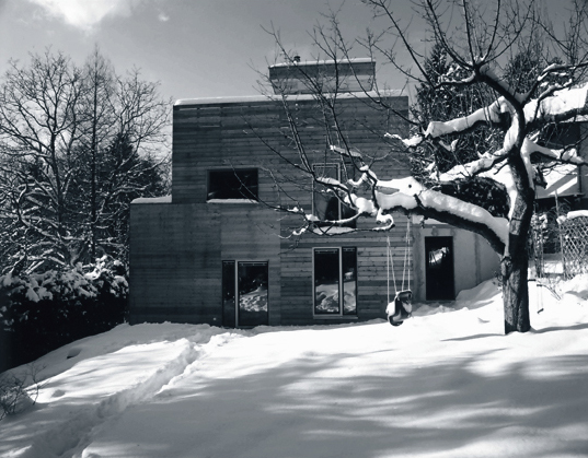Mittlerweile hat sich das Gebälk der Pergola auch als vortreffliche Halterung für Schaukel und Trapez erwiesen, was für den Solarpreis aber weniger ausschlaggebend war. Mehr zählte da schon die ganz auf Umweltverträglichkeit ausgerichtete Bauweise. Es handelt sich um einen mit Zellulose gedämmten Holzriegelbau, dem Stahlbetoninnenwände als Aussteifung und Speichermasse dienen.