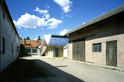 Das jüngste Projekt von Bettina Götz und Richard Manahl, die zusammen unter dem Namen ARTEC firmieren, könnte Anlaß zu einer Diskussion dieses Problems geben. Auf das Wirtschaftsgebäude eines alten Bauernhofes im Marchfeld, bei Raasdorf gelegen, haben sie ein neues Dach gesetzt, eine leichte, in Aluminium verkleidete Holzkonstruktion, die sich in Form und Material deutlich vom Bestand abhebt. Für ihr Projekt haben ARTEC letzten Monat den „Aluminium Architekturpreis“ zugesprochen bekommen, der von der Architektenkammer, der Architekturstiftung Österreich und dem Aluminiumfenster-Institut ausgelobt wird.