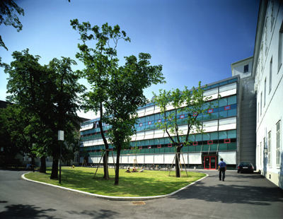 Tatsache ist, daß sich der ausgedehnte Baubestand vom umliegenden Bezirk immer rigoros abgeschottet hat, daß er sich fast wie eine wehrhaft befestigte „Stadt in der Stadt“ präsentierte. Eine der wichtigsten Maßnahmen im Zuge der Revitalisierung zielte daher auf die Öffnung des Areals, auf seine übersichtliche und sinnvolle Durchwegung ab. Dabei hatte die Arge Altes AKH Architekten - das sind die Büros Hugo Potyka, Friedrich Kurrent (künstlerische Koordination) & Johannes Zeininger, Sepp Frank und Ernst M. Kopper (geschäftliche und technische Koordination) - kein leichtes Spiel: Denn das äußere „Gesicht“ der Bebauung sollte dadurch so wenig wie möglich beeinträchtigt oder verändert werden, ganz abgesehen davon, daß in einem Teilbereich die neue Notenbankdruckerei von Wilhelm Holzbauer mit all ihrer Pracht der bescheidenen - und relativ niedrigen - Bebauung des Alten AKH fast schon obszön naherückt.
