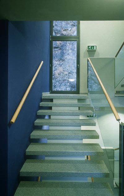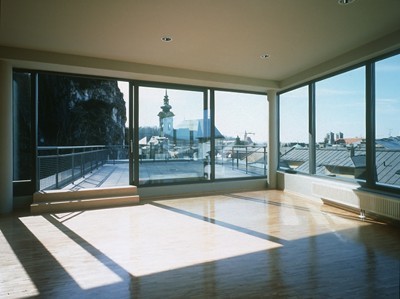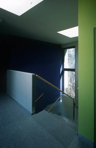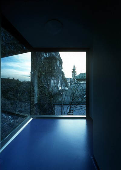 Insgesamt sind für dieses Studentenheim ideale Lösungen gefunden worden: Steter Bezug zur Landschaft, wunderbare Ausblicke auf die Stadt, gleiche Ausrichtungen der Zimmer, Gemeinschaftsnutzungen auf dem Dach, eine die Umgebung reflektierende Glasfassade, ein moderner Bau, der seine Modernität durch den Respekt der Umgebung ausdrückt. (Text: Otto Kapfinger, 21.09.2000)