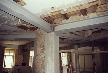 Sie hätte viel zuviel Unruhe in die Räume gebracht, sie hätte das Raumklima belastet. Jetzt deckt das Metallgeflecht an der Decke alle Leitungen und Rohre ab, und durch das Geflecht hindurch wird auch noch die verbrauchte Luft unsichtbar abgesaugt.