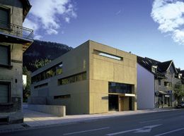Gebäude und Platz verschmelzen zu einem gestalterischen Ganzen, die trotz einer kubischen Reduktion vielfältige räumliche Erlebnisse ermöglichen. (Ein-, Aus- Durchblicke)