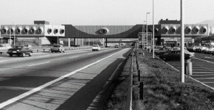 Kurz nach der Fertigstellung erhielt die Autobahnraststätte Pratteln im Kanton Basel-Landschaft bereits wieder ein neues Gesicht. Die Basler Architekten Casoni & Casoni gestalteten mit Elementen aus glasfaserverstärktem Polyesterharz eine eigenwillige Fassade in der Soft-Edge-Ästhetik der siebziger Jahre.