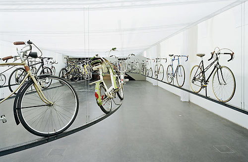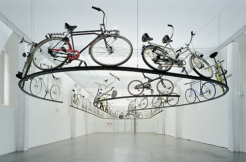 35 außergewöhnliche Fahrräder namhafter Designer wie anonymer Gestalter ziehen in Augenhöhe des Betrachters eine imaginäre schwebende Kreisbahn, eine Inszenierung der Leichtigkeit, die der Natur des Fortbewegungsmittels entspricht. Die Installation unterstreicht den durchaus missionarischen Ansatz der Initiatoren, die den prozentuellen Fahrrad-Anteil in Wien mit Aktivitäten dieser Art ankurbeln möchten: „Das Fahrrad ist auf kurzen Strecken das effizienteste Fortbewegungsmittel schlechthin und gewinnt daher vor allem im urbanen Bereich an Beliebtheit und Akzeptanz. Aus dem Stadtbild nicht mehr auszublenden, ist es mittlerweile zu einem Artefakt der Alltagskultur und Objekt individueller Inszenierung avanciert.“ (Text: Gabriele Kaiser)