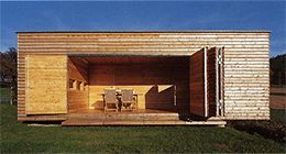 Geöffnet werden kann dier Baukörper durch großflächig angelegte Holzfalttüren auf beiden Längsseiten, wodurch die restliche Kubatur einen Rahmen für das Schauspiel Natur im Wechsel der Tages- und Jahreszeiten ergibt.