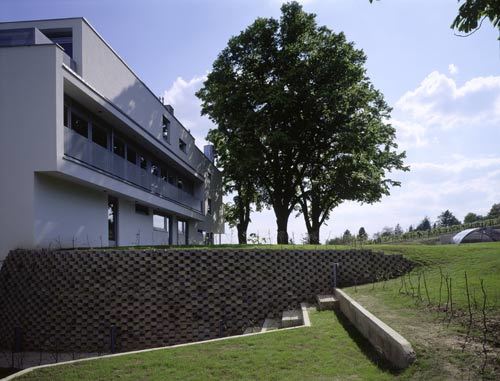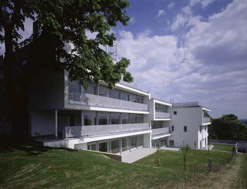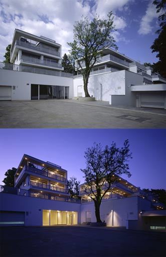 Der ehemalige Serviceeingang des Hotels bot im neuen Raumprogramm die Möglichkeit, der noblen Wohnhausanlage ein entsprechendes Entree zu bieten. Die 20 großzügig geschnittenen Wohnungen basieren auf einem ähnlichen Grundrissprinzip (große loftähnliche Wohnräume mit kleineren Küchen und Vorräumen), variieren aber schon aufgrund der Streuung der stadtvillenartigen Baukörper und sind in der „Regie der Blicke“ (freier Ausblick, maximaler Schutz der Privatsphäre) differenziert organisiert. In der Ausstattung hat der Architekt mit der Geste der Zurückhaltung einen hohen Standard erfüllt. (Text: Gabriele Kaiser)