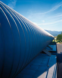 Kaufmann 96 sind für ihre Entwicklung von Fertigteilelementen bereits bekannt und haben dies schon öfter bei Hotelbauten oder Einfamilienhäusern unter Beweis gestellt. Sieben Montageelemente pro Achse wurden bei der Eishalle in der Fabrik vorgefertigt, innerhalb von zwei Monaten stand die Hallenkonstruktion.