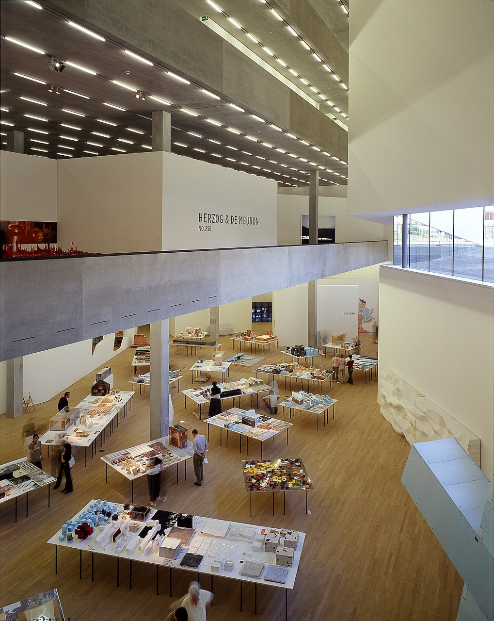 Diese Magie der Reduktion findet ihr Komplement in biomorphen Details. Decke und Wände des Empfangsbereichs sind von Ausstülpungen in Gips überzogen, die ans Innere einer Tropfsteinhöhle erinnern. Kugelförmige Lampen von Jasper Morrison sind in sie hineingedrückt wie Zuckerbälle in einen Teig. «Wir haben hier den Kupferzylinder für die Fensteröffnungen im Computer wie einen Teigroller in die Fläche ausgerollt», erklärt Harry Gugger. Was wirkt, als sei es direkt aus der Natur abgeleitet, ist ein Produkt von Computer und ausgefeilter moderner Fertigungstechnik. Die klaren Geometrien und die biomorph schwellenden Formen sind verschiedene Erscheinungsformen einer einzigen Methode, für die es keinen grundlegenden Unterschied macht, ob ein Element eine rechtwinklige oder unregelmässige Oberfläche hat; der Rechenaufwand ändert sich, seriell produziert und montiert werden aber beide. Von einer «digitalen Architektur, die zugleich archaisch ist», spricht Jacques Herzog. Vom Empfang fällt der Blick durch ein grosses Glasfenster in die Anlieferungshalle, die direkt dahinter wie ein Kanal durch das Gebäude geschossen ist. Auch wer nur zum Besuch der Ausstellung kommt, darf die Atmosphäre des Lagers spüren.