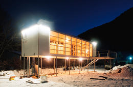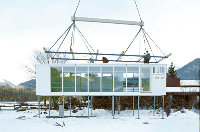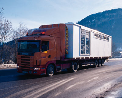 Geliefert wird das Haus mit dem LKW, fix und fertig, anspruchsvolle Qualität: Decke und Boden sind aus massiver Fichte, die Wände aus Schichtstoffplatten gefertigt. Ausgezeichnete Dämmwerte der Außenhülle halten die Betriebskosten gering. Der Sanitärbereich ist bei Anlieferung bereits installiert, ebenso die Heizung.