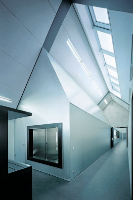 Die Gestaltung des Arbeitsbereichs wird ganz von der Produktion beherrscht. Die Neubauhallen sind als Stahl- und Betonkonstruktionen mit großen Stützweiten ausgeführt, die eine hohe Flexibilität der Nutzung erlauben. Die Fassaden aus silbrigen Aluminiumblechen, Sichtbeton und Glasflächen unterstreichen den technischen Charakter der Gebäude. Im Innern sind helle und übersichtliche Arbeitsplätze untergebracht, die zur rationellen Produktion beitragen. Eine besondere Herausforderung war die Sanierung der denkmalgeschützten Fabrikantenvilla. Im Einklang mit der Denkmalpflege wurden die erhaltenen Art-Deco-Decken, farbigen Fenster und Holztäfelungen restauriert.