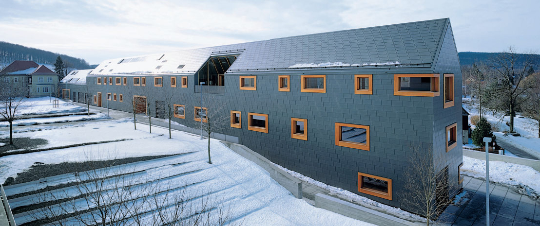 Einen deutlichen Kontrast zum Arbeitsbereich bildet der neu geschaffene Erholungsbereich, der den Beschäftigten die Pausen versüßen soll. Sein Kernstück ist das zwischen 2003 und 2006 errichtete Restaurantgebäude: Eine Remise aus der Zeit um 1900, ein Anbau aus der Zeit um 1980 und ein Neubau wurden hier zu einem zweigeschossigen Gebäude zusammengefasst, das unterschiedliche Funktionen beherbergt. Im Erdgeschoss befinden sich Ausstellungsräume und Werkstätten, während im Obergeschoss Veranstaltungssäle und Schulungsräume untergebracht sind. Den Höhepunkt aber markiert das ebenfalls im Obergeschoss gelegene Betriebsrestaurant, dessen lichte, mit hellem Lärchenholz ausgekleideten Räume eine angenehme Atmosphäre verbreiten. Die großen Panoramafenster erlauben einen wunderbaren Ausblick auf das Lausitzer Bergland und die beiden in das Dach eingeschnittenen Terrassen bieten im Sommer Freiluftplätze. Die Architektur unterstreicht den besonderen Charakter des Betriebsrestaurants. Im Gegensatz zu den anderen Werksgebäuden wurde dieser Bau mit anthrazitfarbenen Zinkblech-Schindeln verkleidet, die einen Bezug zu den schieferverkleideten Häusern der Nachbarschaft herstellen. Ergänzt wird der regionale Bezug durch die tieflaibigen Kastenfenster aus hellem Holz.