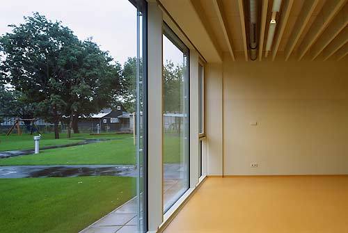 Die Gruppenräume sind groß, voll auf den Grünraum orientiert und nicht übermöbliert. Sicher, es ist alles da, was gebraucht wird. Aber die Kinder haben Platz, sie können sich bewegen. Da merkt man einfach, dass Architekt und Heimleitung sich verständigen konnten. Es gibt andere Beispiele, da haben profilierte Architekten ähnliche Vorschläge gemacht, die dann von der Tagesstättenleitung durch eine eklatante Übermöblierung illusorisch wurden.
