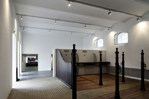 Und sie haben städtebaulich gedacht und einen klar definierten Zugang geschaffen - der nicht nur durch den Schriftzug weithin erkennbar ist, sondern auch durch eine dezente, aber wirkungsvolle räumliche Lösung, die unter Arkaden auf einen verglasten Eingang hinführt. Man musste natürlich heftig entkernen und entsprechende statische Maßnahmen setzen, um so weit zu kommen. Das Kellergeschoß zum Beispiel: Das war vorher nichts und ist jetzt etwas. Nämlich einer der Hauptschauplätze des gewünschten Rettungsmuseums, das ebenfalls zum Raumprogramm gehörte. Übrigens das einzige Rettungsmuseum in Wien, zwar, was die Exponate betrifft, nicht sonderlich spektakulär, aber einen Klassenausflug für Volksschüler wird es schon wert sein. Zitat Markus Geiswinkler: „Auch wenn die Exponate im Grund unbedeutend sind - es ging trotzdem darum, einen würdevolle Rahmen zu schaffen.“