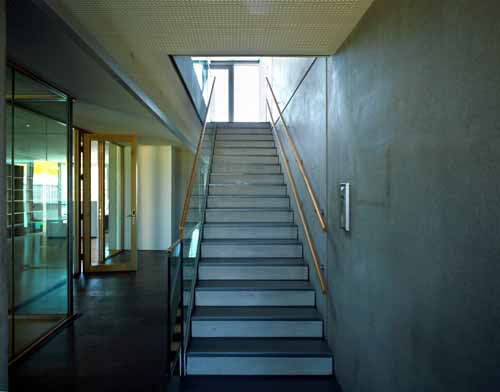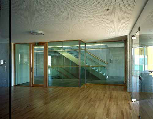 Dass es sich dabei um ein Gebäude für Kinder handelt, sieht man dem schlichten Bau der Runser/Prantl/Architekten - zumindest auf den ersten Blick - bei Gott nicht an. Eher denkt man an herausgeputzte City-Lofts oder an den neuen Firmensitz der österreichischen Baustoffindustrie: Sichtbeton in Reinkultur, viel Aluminium an der Fassade und reichlich Glas in den Varianten durchsichtig und flaschengrün gefärbt. Doch was spräche denn dagegen, ein Haus für Kinder nicht auch einmal ästhetisch und elegant zu gestalten? Oder anders gefragt: Was spricht dafür, wieder einmal auf das geistig bescheidene Konzept von Ritterburgen und Märchenschlössern zurückzugreifen?