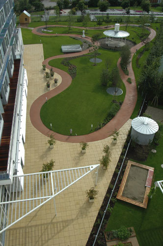 Hier ist das rundum gelungen. Die Bewohner sehen entweder in die Tokiostraße oder - gartenseitig, denn dieses Haus verfügt über einen großen „Therapiegarten“, den Jakob Fina geplant hat.