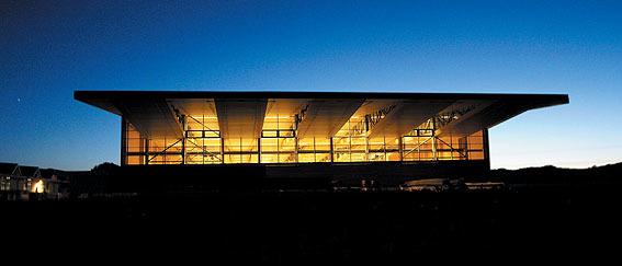 Die Hallenkonstruktion wurde in Elementbauweise konzipiert, und als solche werkseitig vollständig vorgefertigt und anschließend in vier Wochen montiert. Dies garantierte ein hohes Maß an Qualitätssicherung und reduzierte des weiteren die Bauzeit beträchtlich.