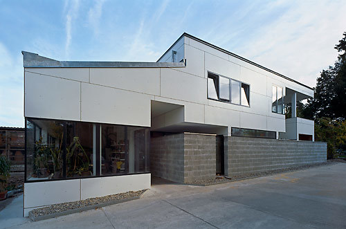 Im Obergeschoss mit Galerie über der Küchenzeile sind alle Schlafzimmer mit den Nebenräumen und im Norden ist die Werkstatt. (Gabriele Kaiser nach einem Text der Architekten)