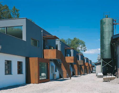 Für das ehemalige Betriebsgelände der Glockengießerei Oberascher in Salzburg-Kasern wurde im Zuge eines gemeinsam mit dem Architekturbüro „hobby a.“ 2004 siegreich bestrittenen Ideenwettbewerbs ein Gesamtkonzept für die Neunutzung erarbeitet, das mit der industriellen Substanz behutsamen Umgang pflegt.Die konkrete bauliche Umsetzung teilten sich die beiden Büros auf, wobei Tom Lechner den westseitigen Gebäuderiegel übernahm und in zeitgemäße Loftbüros verwandelte. Ein Verbindungstrakt zu den ehemaligen Produktionshallen, die künftig zur Eventlocation aufgerüstet werden, wurde abgebrochen, der Baukörper auf 115 m verlängert und um ein Geschoss aufgestockt. Einige der alten Außenmauern bleiben als Relikte der verblichenen Industrienutzung erkennbar, auch die „rohe“ Anmutung des Korten-Stahls an den eingeschnittenen Fensterboxen sowie der übrigen verwendeten Materialien (Sicht- und Ortbeton, Betonsteinwände) ist eine Reminiszenz an die ursprüngliche Nutzung. In einer zweiten Bauetappe wird Lechner einen achtgeschossigen Büroturm errichten, der den Erschließungsbereich im Süden des Ensembles signifikant strukturieren soll. (Text: Gabriele Kaiser)