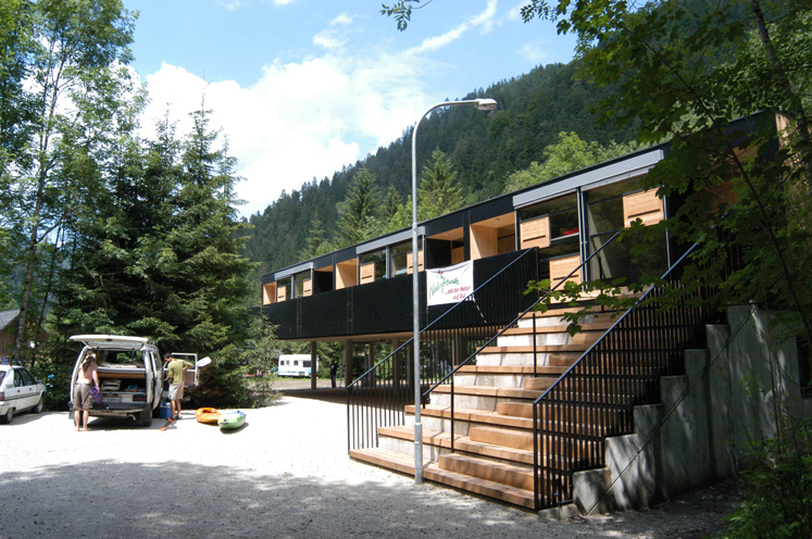 Modulares Bauen, Serienproduktion, Flexibilität, Ortsungebundenheit, all dies suggeriert der vor rund fünf Jahren formulierte Anspruch von HolzBox. Das Innsbrucker Architekturbüro konnte 2003 den Wettbewerb der steiermärkischen Landesregierung für ein multifunktionales Campmodul für Jugendliche und Familien für sich entscheiden. Das modulare Musterkonzept sollte die architektonische, infrastrukturelle und funktionale Qualität von Ferienherbergen verbessern. Gefordert waren ein Betreuermodul mit einem Bett, ein Jugendraummodul mit sechs und ein Familienmodul mit vier bis fünf Betten. Die Lösung von HolzBox war einfach: drei gleich lange, beliebig kombinierbare Containermodule aus Massivholzplatten. Denn obwohl ursprünglich eine Ausführung in Holzrahmenbauweise geplant war, entschieden sich die Architekten im Lauf des Umsetzungsprozesses für die Holzmassivbauweise mit Brettsperrholzplatten, da diese, so Ferdinand Reiter, der Architektur viel eher entsprach und nicht zuletzt aufgrund der geografischen Nähe zu den steirischen Produzenten auf der Hand lag.