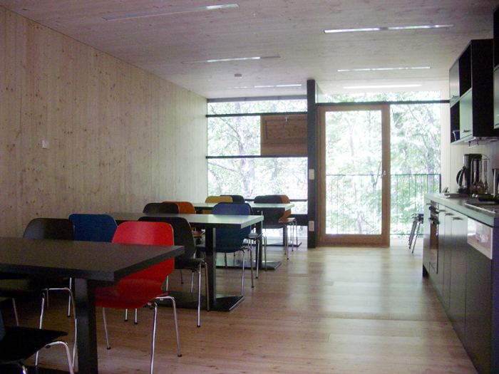 Für alle drei Grundtypen – Betreuerraum (ca. 19 m²), Jugendraum (ca. 29 m²) und Wohneinheit (ca. 39 m²) – entwickelte HolzBox besonders ökonomische Grundrisse, die im Bedarfsfall modifiziert wurden, wie etwa beim 55 m² großen, behindertengerechten Appartement-Typ in Bad Aussee.