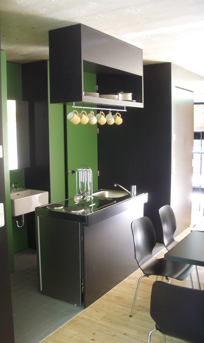 »Die Box kann, mitsamt ihren Möbeln, bereits vorgefertigt auf die Baustelle geliefert werden. Nach Größe und Gestalt der Anlage werden die Boxen dann addiert bzw. gestapelt.«