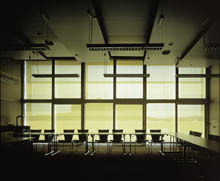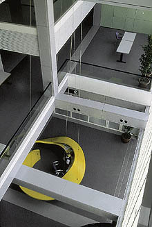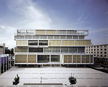 Gemäss dem Credo von Sadar & Vuga, die Bedürfnisse des Auftraggebers in einem Bau zu materialisieren, der mit gezielten Effekten Benutzer und Besucher zu begeistern weiss, entwarfen sie einen «Megastore des Kapitals». Dessen funktionale Identität ist nicht mehr der Maschinenideologie Le Corbusiers verpflichtet, sondern einem auf Austausch, Interaktion und schnellen Zugriff ausgerichteten Network. Kernstück der Anlage bildet daher eine mit ihren irritierenden Perspektiven an Science-fiction-Filme erinnernde Vertikalhalle, um die herum Bibliothek und Vortragssäle angeordnet sind sowie die einem Gang folgenden Büros im Nordteil des Baus.