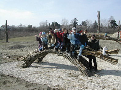 Weidenbau - mit tatkräftiger Mithilfe von Kindern, Schüler:innen und deren Betreuer:innen wurden mit der die Umsetzung der Bauphase 2 begonnen. Drei verschiedene Elemente aus Weiden wurden hergestellt: 20 Weidensäulen - sie bilden den Rahmen für die Spielfelder; 3 Weidenmonster – sorgen für bekletterbare Aufregung; 6 Weidengräben – locken Kinder in ihre Gänge
