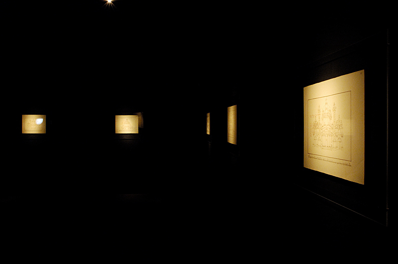 Der Hierarchie und der Abfolge enthoben „ergötzen“ Splitterwerk „das Auge der Liebhaber“: Von der „Karlskirche“ – Zehn Collagen, Bildobjekte aus Reproduktionen von Aufrissen und Schnitten und Grundrissen der Karlskirche, überschrieben, übermalt oder verpackt mit Zitaten von Konrad Adolph von Albrecht, Gilles Deleuze bis zum 1. Buch der Könige – Räume für individuelle Geschichten der BetrachterIn – über das „Kaiserforum“: neun Colourprints, neun der prächtigsten Entwürfe einer historischen Architektur zum Dreieck, bestehend aus Karlskirche, Hofstallungen und Hofburg in Anlehnung an spätere Entwürfe zum Kaiserforum – verändert und manipuliert, arrangiert – bis zum „Enturff einer historischen Architektur“ – mehrschichtige Glastafeln, Visionäre der Architektur der ersten Hälfte des 20. Jahrhunderts in Bezug gesetzt zu Johann Bernhard Fischer von Erlach – neue Bezüge, neue Geschichte.
