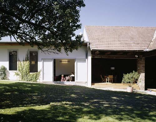 „Unsere Toskana-Woche ist legendär“, sagt der Bauherr. Gemeinsam mit seiner Frau arbeitet er in der freien Theaterszene und fährt mitsamt Team jedes Jahr dorthin, um neue Energien zu tanken. Zurück in Wien, hatten beide eine nachhaltige Sehnsucht und beschlossen, dem anhaltenden Toskana-Gefühl mit eigenem Haus und Hof Rechnung zu tragen. Also suchte man in der Umgebung Korneuburgs ein leistbares Landdomizil mit geschlossenem Innenhof. „Privat für sich unter der Weite des freien Himmels zu sein war für uns Stadtmenschen eine tolle Erfahrung. In diesen gesichtslosen Straßendörfern liegen wahre Perlen verborgen“, erklären die Bauherren.