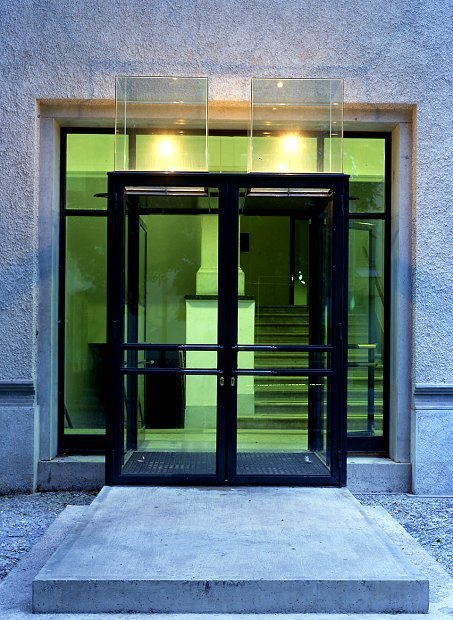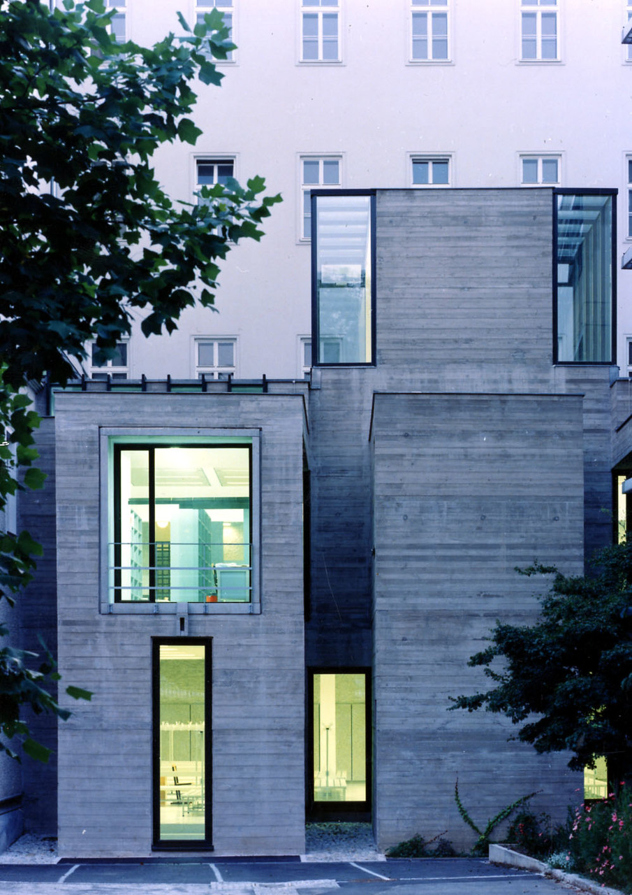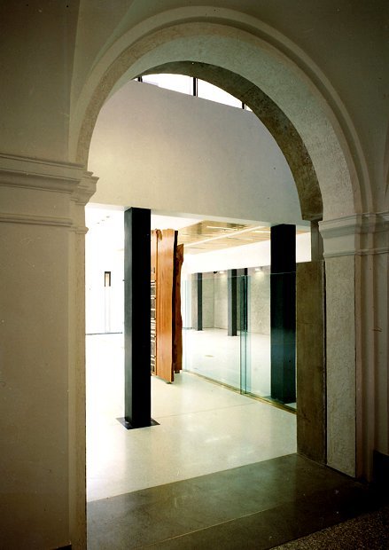 Die Anlage lebt vom gegenseitigen Dualismus zwischen Alt und Neu, wobei beide autonom bleiben. (Text: Croce - Klug)