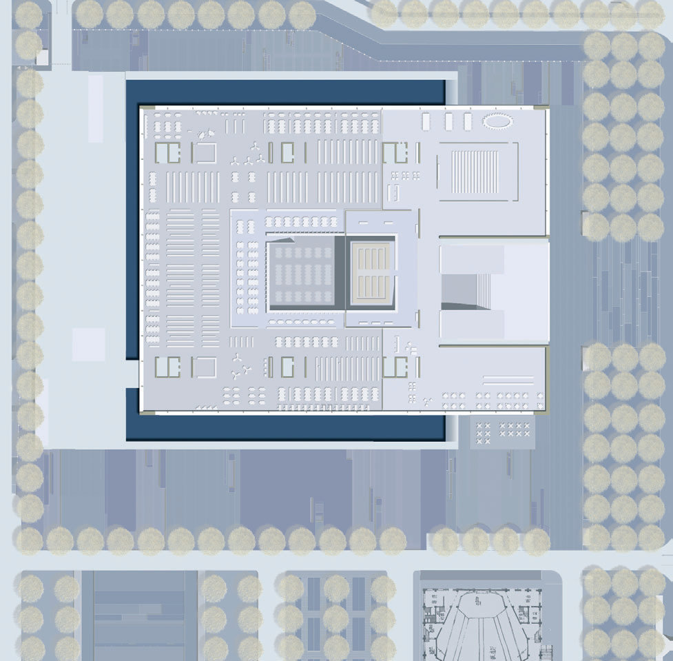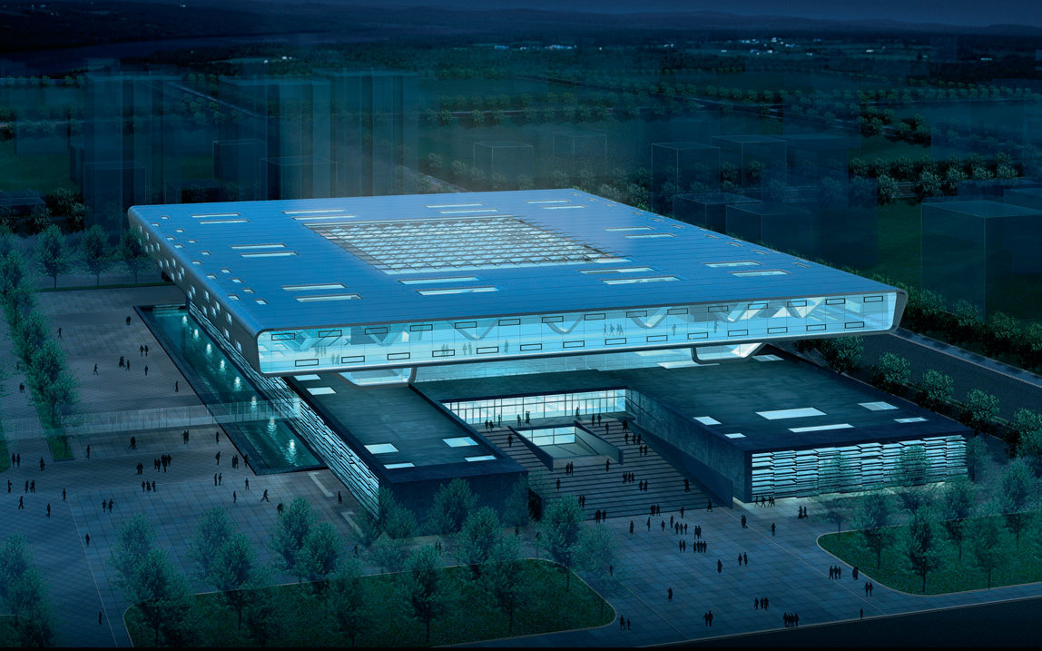 Als Herz der Bibliothek ist der gläserne Tresor für die Sammlung »Si Ku Quan Shu« stets sichtbar. Von außen betrachtet, wirken die obersten beiden Ebenen als eine Art liegendes Buch, das von schrägen Stützen gehalten wird. Der erhöhte Sockel, die Säulen und das Dach sind in der chinesischen Baugeschichte stilistische Elemente, die den bedeutenden, meist öffentlichen Bauten vorbehalten waren. In einer zeitgenössischen Interpretation greift der Entwurf diese Elemente auf und stellt das Gebäude auch formal in den seiner Funktion angemessenen historischen Zusammenhang.