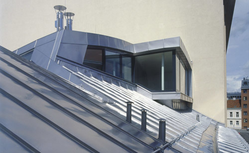 Auf dem Dach eines Wiener Fuhrwerkshauses zeigt Architekt Peter Liaunig vor, wie er sich Wohnen und Arbeiten in Alt und Neu vorstellt. Das neue Dachgeschoß ist ein expressives Spiel mit geometrischen Formen. Über einen Steg gelangt man auf einen Dachgarten.