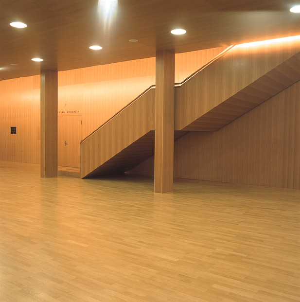 Die in Volumen und betrieblicher Nutzung umgesetzte Differenzierung der verschiedenen Bereiche der beiden Säle, dem Foyer, dem Restaurant, den Vereinsräumen, der Küche und allen weiteren für den Betrieb notwendigen Nebenräume gewährleisten ein gegenseitig flexibles Nutzungsangebot für verschiedenste Veranstaltungen. Die Zusammenfassung und sinnvolle Zuordnung der Nebenbereiche ermöglichen den verlangten reibungslosen Funktionsablauf bei variablem Raumangebot.