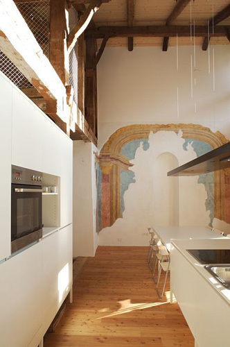 Insgesamt wurden weniger Räume und Zimmer geschaffen, als Atmosphären und Nischen, die durchlässig hintereinander, nebeneinander und übereinander geschichtet sind. Neues fügt sich behutsam ins Alte ein. Es offenbart sich nicht in der architektonischen Gliederung, sondern im Freimachen der Räume. Subtile Lösungen für Licht und Belichtung, eine hochwertige Innenausstattung und ein reduziertes Farbkonzept prägen diese Transformation, in der es weniger um das Schaffen von Raum, als um das Sichtbarmachen von Raum geht. (Text: Claudia Wedekind nach einem Text des Architekten)