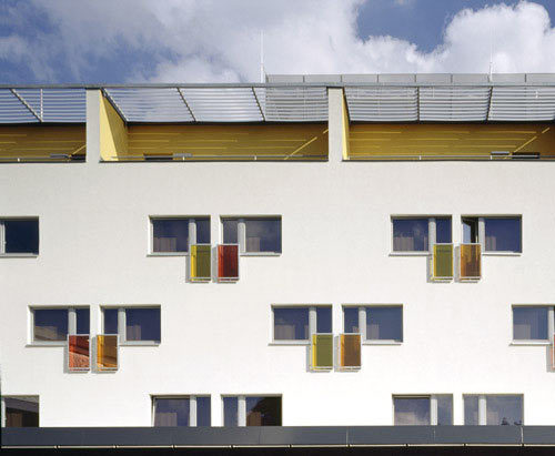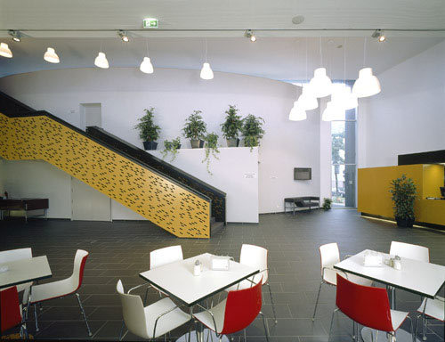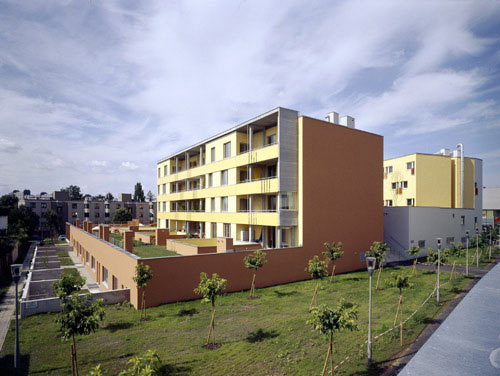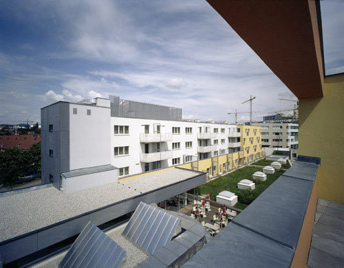 Der Wohnbau ist als Dreispänner mit 4 Stiegenhäusern mit vorgelagerten Atriumhäusern im Sockel konzipiert. Das Hotel markiert den südlichen Eingang ins Kabelwerk. Das Erdgeschoss beherbergt den Veranstaltungssaal mit vorgelagerter Cafeteria und 3 geschossiger gestaffelter Halle. Das Hallendach wird von 25 m frei gespannten Hohldielen gebildet und erlaubt einen weitschweifenden Blick auf 3 Ebenen. Der bewusst kompakte Zimmertrakt schwebt über den Nahversorgern und erlaubt direkte Ausgänge vom Zimmer in den Garten. (Gabriele Kaiser nach einem Text der Architekten)