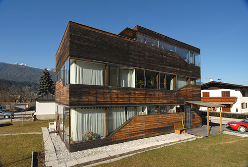 Einer finanzschwachen, eigenleistungswilligen Familie ohne Gartenambitionen entwarf Architekt Gerhard Blasisker ein Low-Budget- Haus mit selbstbaugerechten Details und vermietbarem Einlieger am Garten. Blickschützend mäandert sich die sägeraue Holzfassade um den Kontrapunkt-Bau im Tiroler Ort Weer. Seine drei Ebenen mit großer Dachterrasse zum ungestörten Grillen bieten alles, was es zum Leben braucht.