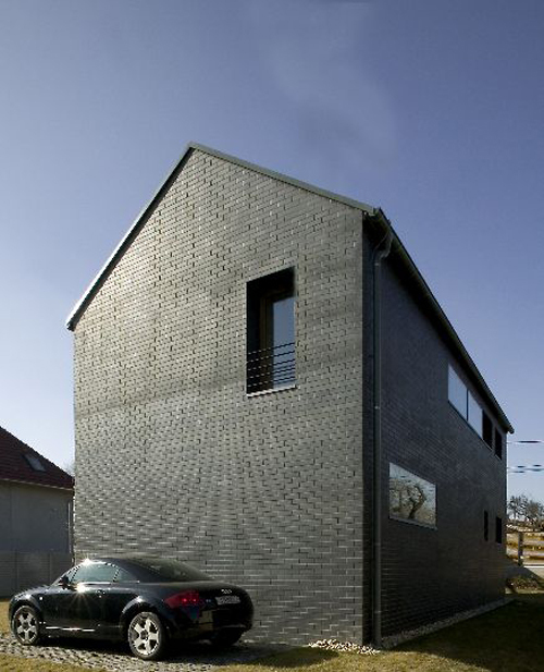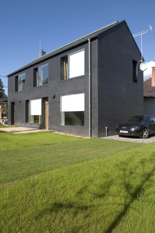 The design balances between archaism and modernism. The traditional form of the house and the modern materials like glazing gives character to the house. And of course the black ceramics applied on the facade, which is an unusual solution in Hungary even tough in many other countries it is not rare. That was the client who made the final decision after browsing all the possible colors. The result is reassuring and elegant more than eccentric and suits to the garden suburbs.