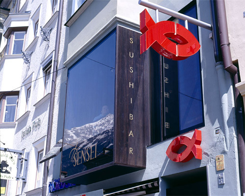 Das »Sensei« in Innsbruck ist auf diesem Weg schon ganz schön weit gelangt. Wie schreibt man Sushi und Sashimi einer bürgerlichen Innenstadtumgebung im Tirol, gegenüber von Barock und Kopfsteinpflaster, ein? Indem man beispielsweise – so wie das Rainer Köberl tat – ein Zimmer zur Schatulle macht. Köberls Kunstgriff besteht darin, das »Sensei« wie ein Kleinod auszubilden, das den ganzen Raum ausfüllt, ein Massstabssprung, der sozusagen automatisch und ganz selbstverständlich die Simulation in Gang setzt. Es braucht dann keinerlei Rechtfertigung, warum das Innere aus Holz gefertigt ist, warum das Holz mit allerlei Methoden veredelt und verfremdet wurde, warum zur Strasse hin das Ganze wie ein Schrein sich öffnet. Die Lage des »Sensei« im ersten Obergeschoss unterstreicht die Exklusivität des Raums zusätzlich und erinnert etwa an die alten Ritterstuben, in denen die Trophäen aus fremden Ländern prangten. Einmal eingetreten in den Mikrokosmos, geniesst man die Raffinesse der Details, der Oberflächen und der Lichtreflexe in der Dunkelheit, streichelt die Furniere mit dem Tigermuster auf den Tischen und fragt sich, wie es möglich war, aus Lärche ein goldbesticktes Ebenholzparkett hervorzuzaubern. »Sensei« belegt eindrücklich, dass künstlich nicht ein Widerspruch zu echt darstellen muss, was unter anderem deshalb gelingt, weil die Übersetzung mit dem Original vollkommen frei umgeht.