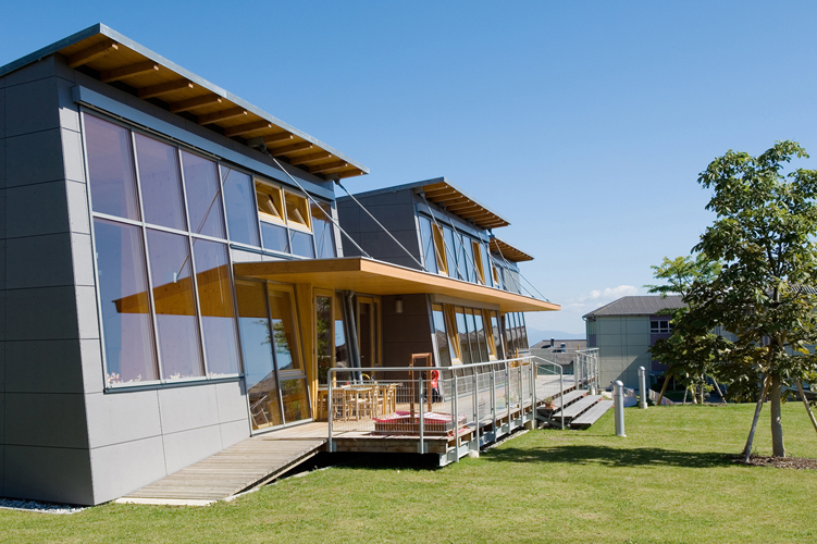 Die Gruppenräume und der Bewegungsraum sind in Richtung Spielgarten und aus Energiespargründen nach Süden orientiert, die Nebenräume liegen im Norden.