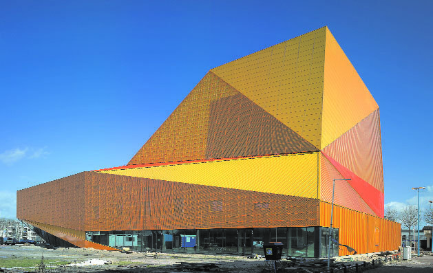 Das neue »Agora-Theater« in Lelystad ist ein äußerst farbenfreudiger und entschieden positiver Bau. Er ist Teil des Masterplans von Adriaan Geuze, mit dem das pragmatisch nüchterne, ja fast schon triste Stadtzentrum neu belebt werden soll. Auf die aktuelle Aufgabe, den holländischen New Towns nach dem Krieg wieder neuen Schwung zu verleihen, antwortet das Gebäude indem es sich auf die eigentliche Funktion eines Theater konzentriert: Das Erschaffen einer Welt voller Täuschung und Zauberei. Sowohl das Innere als auch die äußere Hülle des Gebäudes sind äußerst facettenreich gestaltet, um das kurzweilige Erlebnis der Bühnenwelt erfahrbar zu machen – ein Erlebnis, bei dem man nie sicher sein kann, was real ist und was nicht. Im »Agora-Theater« sind Begriffe wie »Drama« und »Performance« nicht auf die abendliche Vorstellung auf der Bühne beschränkt; sie werden vielmehr zu einer städtischen Erfahrung gemacht – und das auch tagsüber.