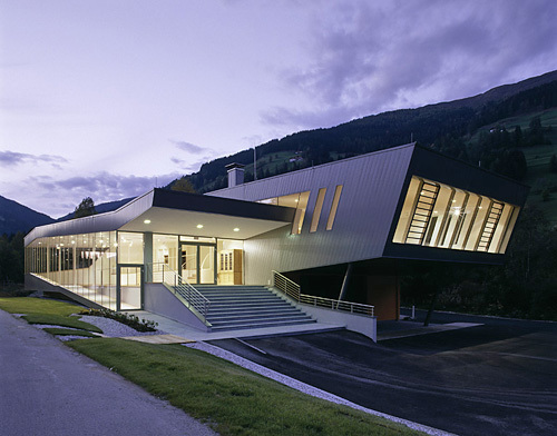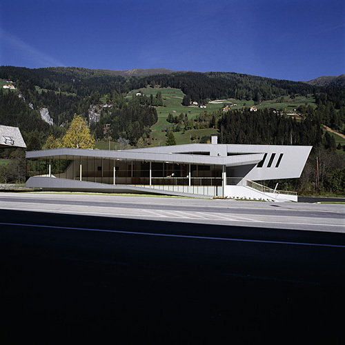 Die Ausstellungsebenen mit darüber befindlichem Lager wurden in einer massiven Stahlbetonbauweise, das „bewegte Dach“ in einer Holzleimbauweise errichtet. Um den Innenraum so neutral als möglich zu halten, wurde dieser komplett mit weiß gestrichenen GK-Platten verkleidet. Die Außenhaut besteht aus vorgehängten Metallpaneelen. Die „Nur-Glas“ Fassade, die bei Beleuchtung am Abend nahezu unsichtbar wird, macht die Ausstellung von der Straße aus sehr gut einsehbar. Mittels dieser großflächigen Verglasungen und einiger Oberlichten Richtung Norden wird die gesamte Ausstellungsfläche gut belichtet. Die skulpturale Form des Gebäudes wird zum Blickfang und zum grenzüberschreitenden Signal an einer ehemaligen Trennlinie. (Text: Architekten)
